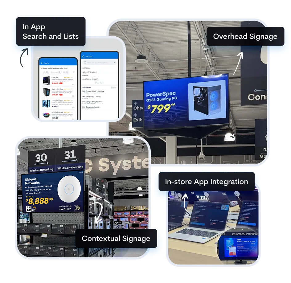 Launch dynamic shelf-level content. Automate programs and pricing. Net real sales impact. Launch your own media network and optimize by aisle and in every store.